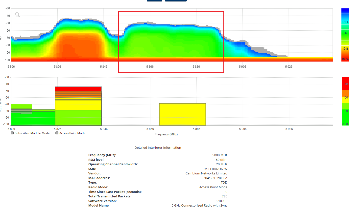 Spectrum chart looks clear but it does show another WISP with a Cambium AP covering part of my channel. However, it might be synced so I am not sure if that would be interference or not.