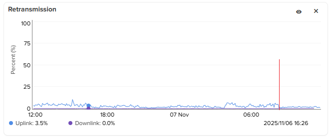 Here is one of the SMs Retransmission chart for the last 24hrs with the red line showing the AP reboot. Also included is the last 7 days chart showing the recent increase the last few days.