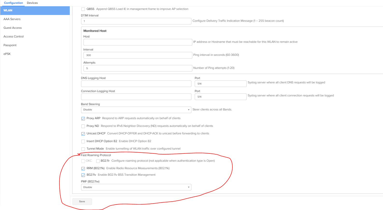 I would really appreciate your advice on which of these should be enabled to ensure smooth and seamless client handoff between access points. If you have any recommended combinations, deployment scenarios, or lessons learned from your own implementations, please share.