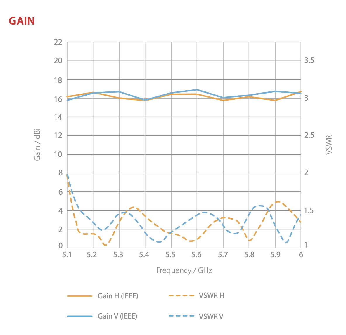 On the AH60-4x4-SMA product datasheet, RF Elements claims their 5 GHz 60° 4x4 Asymmetrical Horn Antenna has 16-17 dBi in 5 GHz from 5.1 to 6.0 GHz.