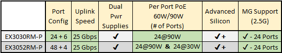EX3030RM-P: 24 x 2.5G + 6 x 25G