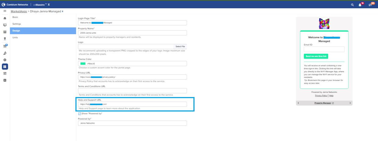 A dedicated Help & Support link has been introduced on the Design page, offering direct access to documentation, FAQs, and support resources. This improvement is visible in the following areas:- Email Authentication Page: Help link added to the footer for both Managed Wi-Fi and Self Service Personal Wi-Fi.