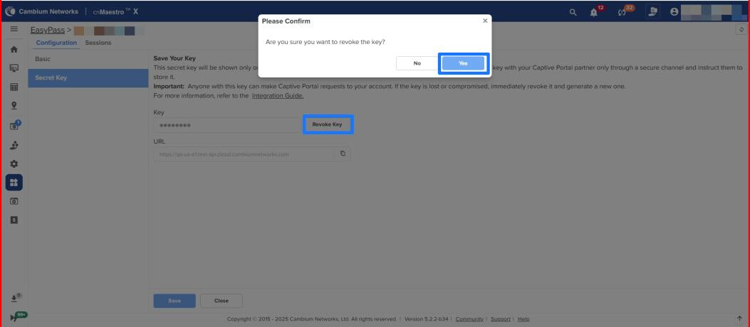 Anyone with this key can make Captive Portal requests to your account. If the key is lost or compromised, immediately revoke it and generate a new one.