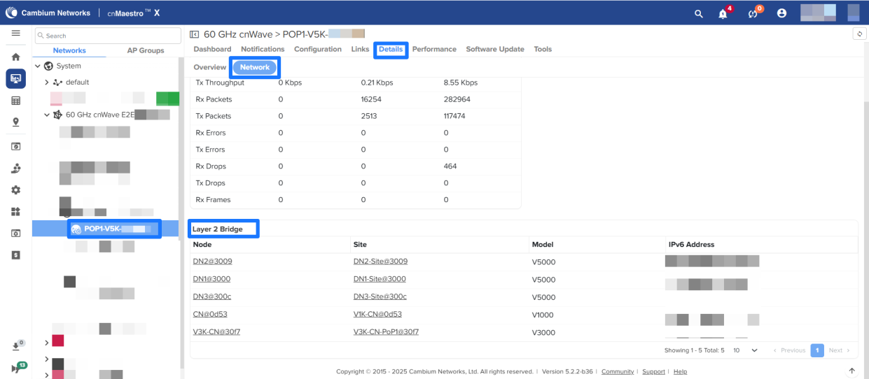 Users can now view Layer 2 Bridge tunnel details by clicking on a tunnel, which redirects to the Details → Network tab displaying the relevant information.