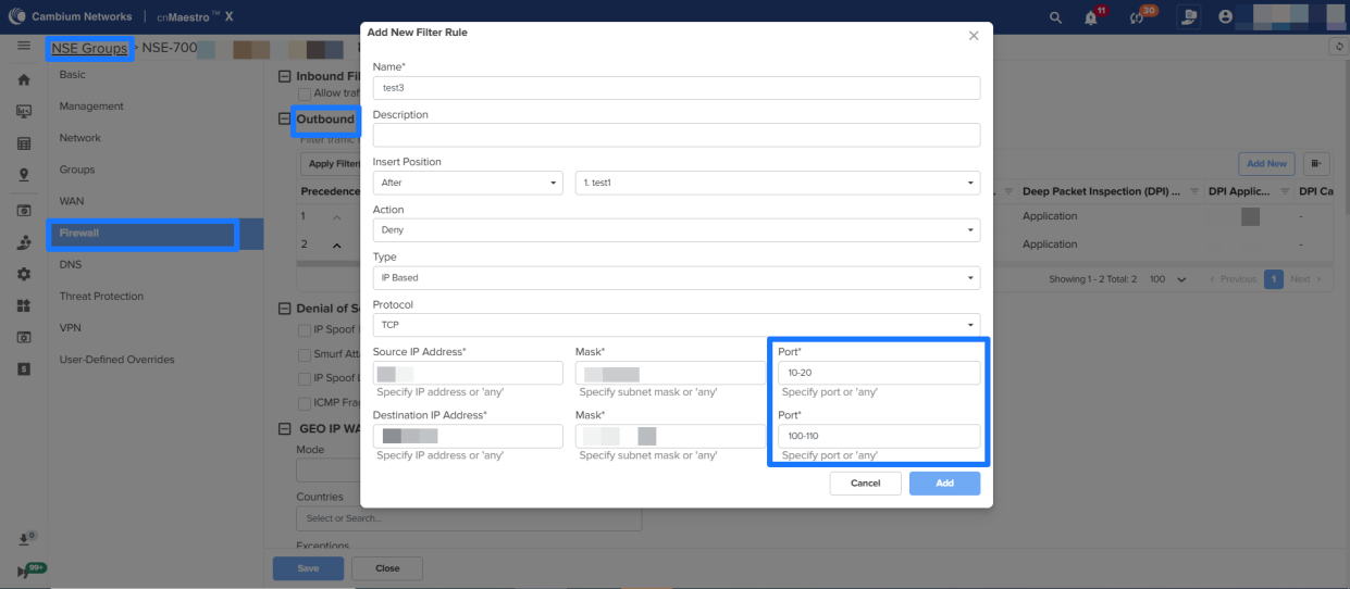 Range of Ports for Firewall Outbound Filter rules and NAT One-To-Many in NSE Groups