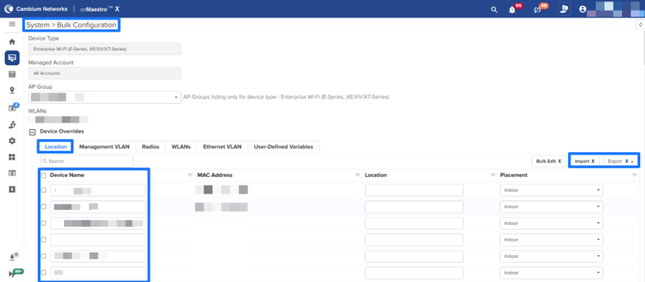 Enterprise Access point Device names can now be updated in bulk using two methods: