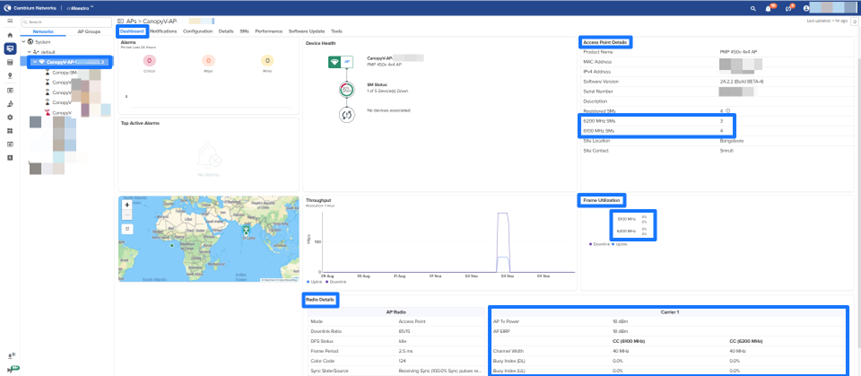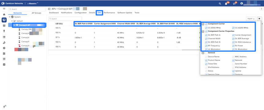 cnMaestro now supports displaying Multiple Component Carriers for the PMP 450v platform across various dashboards and views.