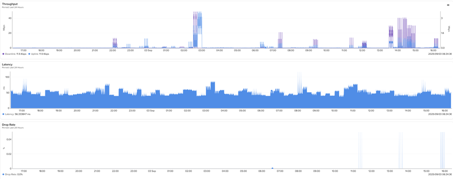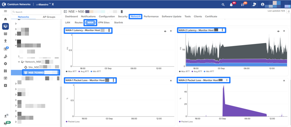 WAN monitoring has been improved to provide deeper visibility into network health. In addition to speed and throughput, users can now view charts for: