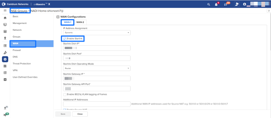 - Ensure the “Enable Starlink” option is enabled in NSE Group → WAN.