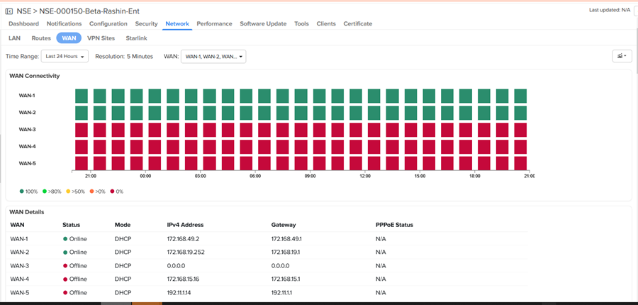 NSE WAN Monitoring now supports dynamic visualization and control for multiple WAN interfaces through an enhanced WAN Monitoring tab.