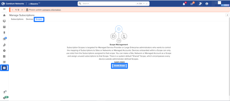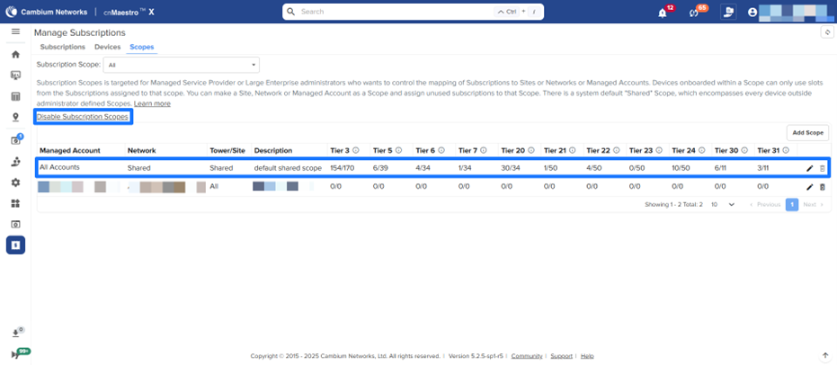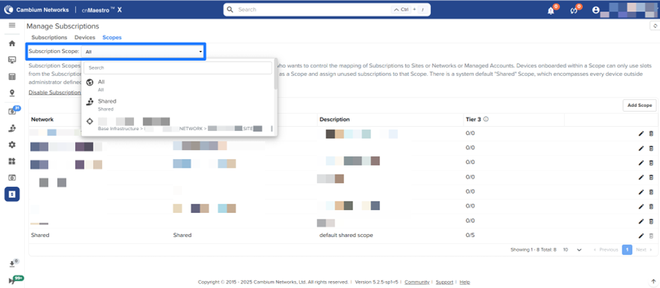 A new scope filter on the Manage Subscriptions page provides clear visibility into allocated subscriptions and the devices onboarded within each scope.