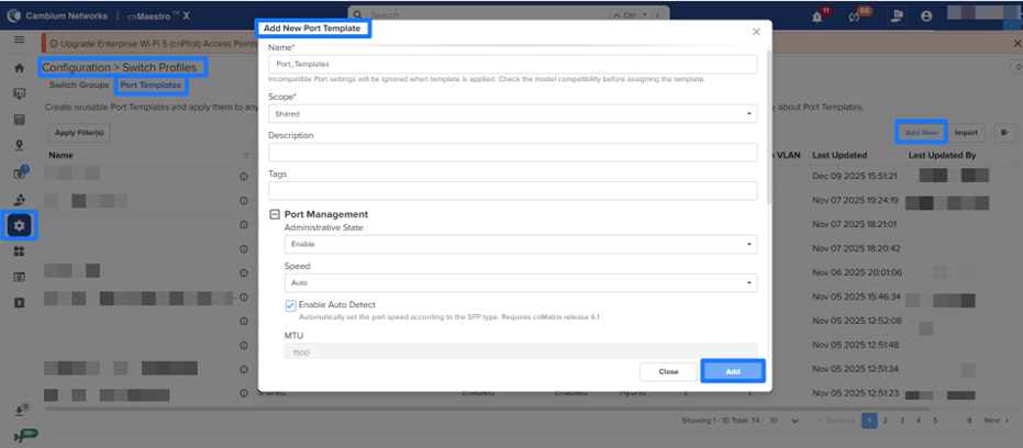 This release introduces significant improvements to port-level configuration within Switch Profiles, enabling administrators to streamline switch provisioning and maintain consistent configurations across cnMatrix models using Port Templates and Port Mapping.