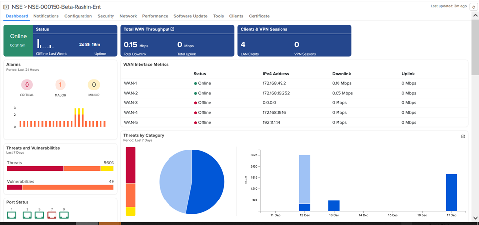 The NSE device dashboard has been enhanced to surface multiple WAN interfaces with richer status and performance visibility