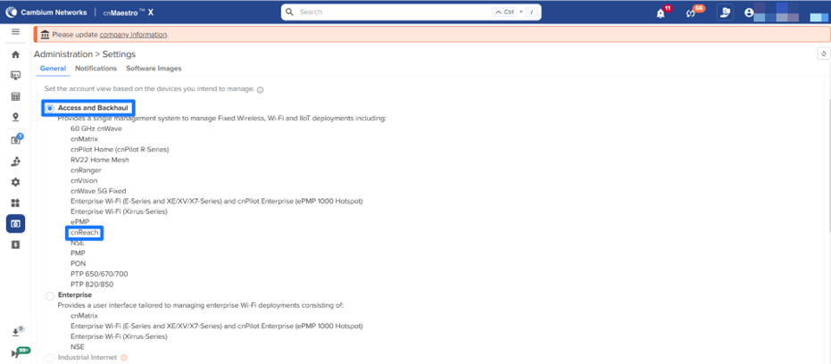To ensure continuity, cnReach device management has been migrated to the Access and Backhaul account view. This change eliminates the need for the Industrial Internet account view while maintaining full device management capabilities.