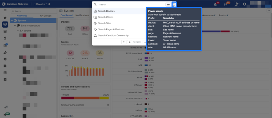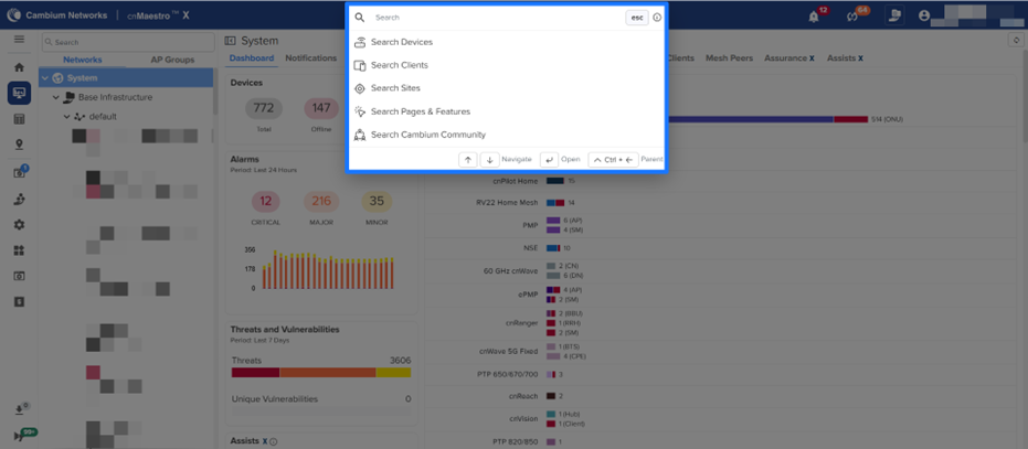 The new Enhanced Search Bar in cnMaestro streamlines navigation, troubleshooting, and system management through a unified, intelligent search experience.
