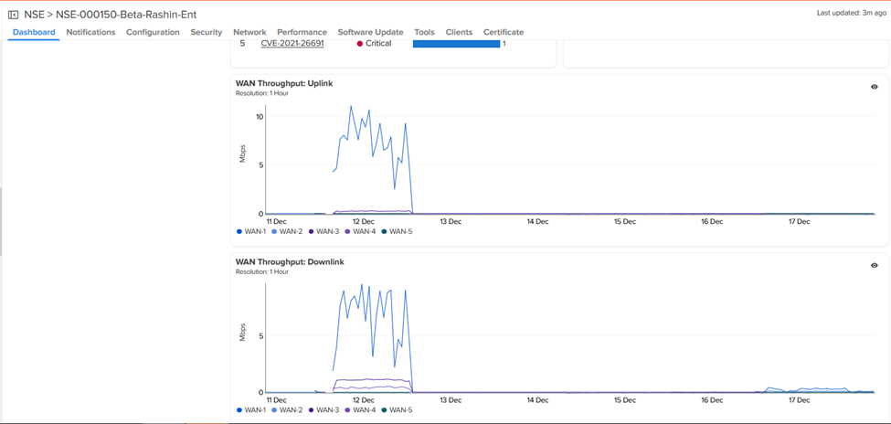 The throughput charts have been expanded from per WAN1/WAN2 graphs to unified WAN Throughput (Uplink/Downlink) separate graphs, plotting individual series for every WAN interface so users can monitor multi WAN utilization graphs directly from the dashboard.