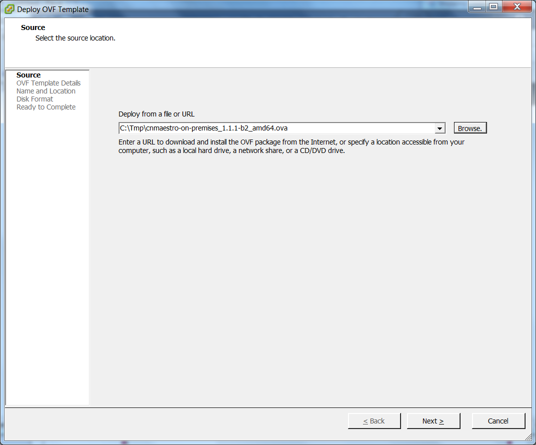3. Select the Downloaded cnMaestro OVA File.