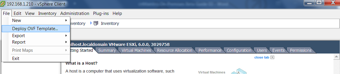 2. On the VMware select File Deploy OVF Template.