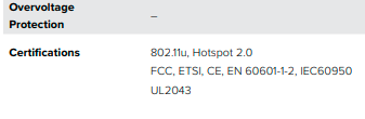WiFi Alliance was removed from the list entirely. I don’t think the problem was about punctuation or attention to detail on the customer’s side as Cambium either had an error, or was hopeful about certification and couldn’t get it. I recognize this is just an error on the part of Cambium, but it can be frustrating to base decisions or plans on erroneous datasheets.