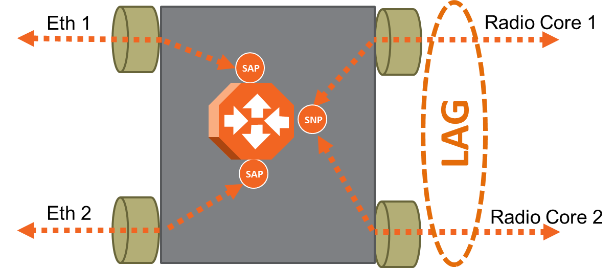 SAP –Eth 1 & SAP – Eth 2 <-> SNP Group 1 (LAG of Radio core 1 and 2)