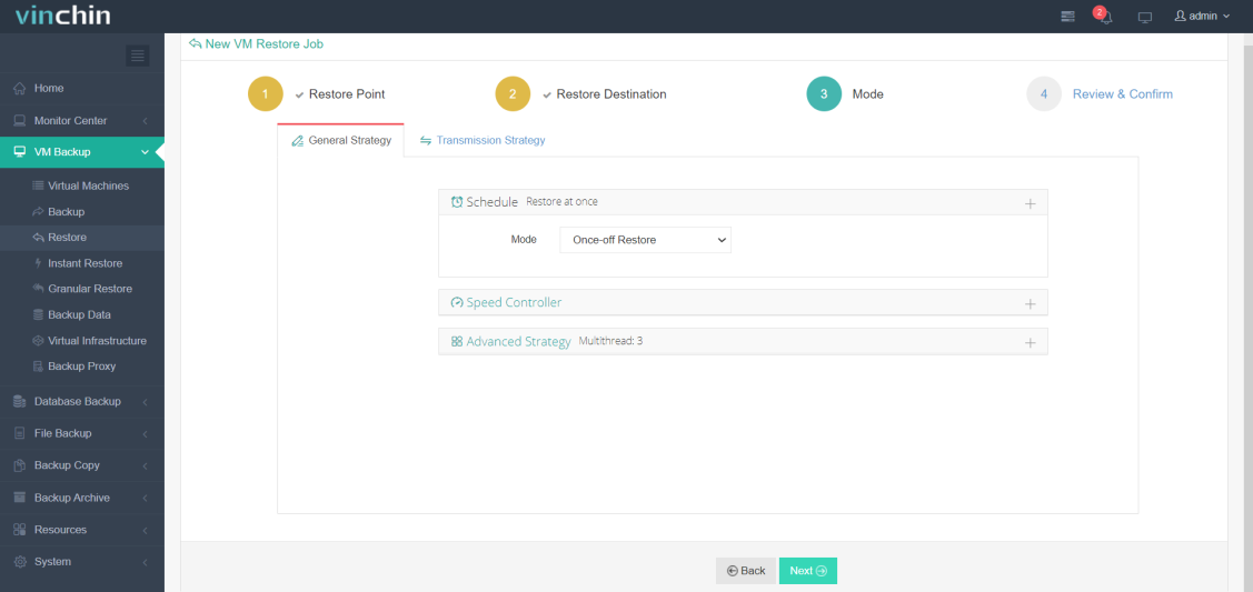 In the Mode page, select the Schedule as Once off Restore and click Next.