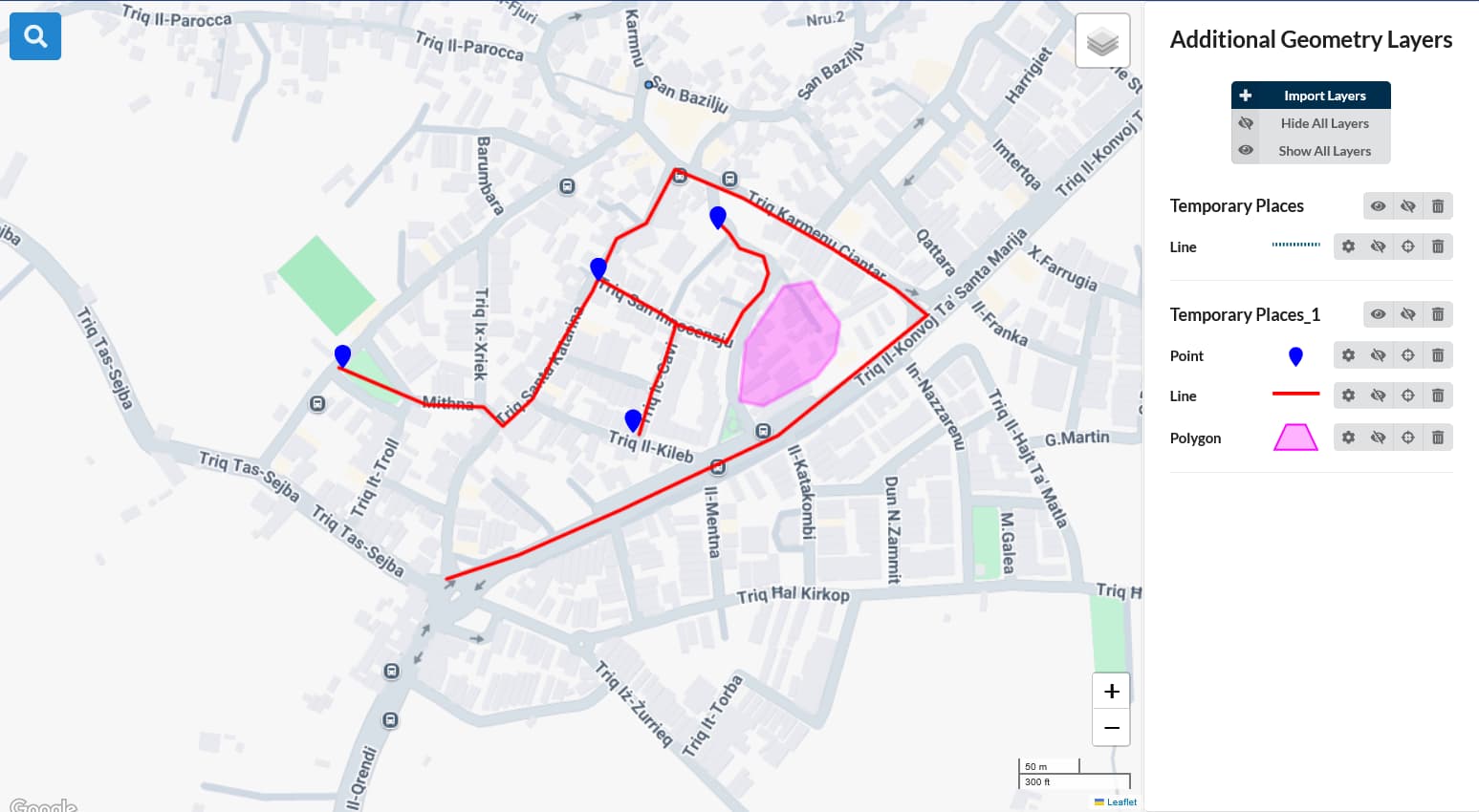 Once the import has finished, the menu in the Additional Geometry Layers will be populated with an entry for each imported file. This menu contains a list of geometry files that have been previously imported. Use the radio button