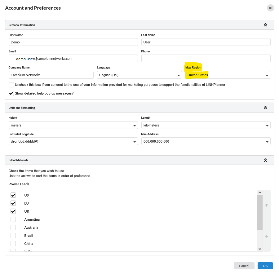 Set the required Map Region in the Preferences window to display the correct regional map.