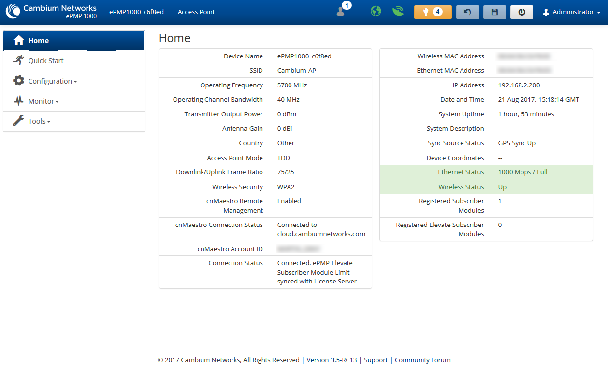 ePMP 1000 GUI dashboard
