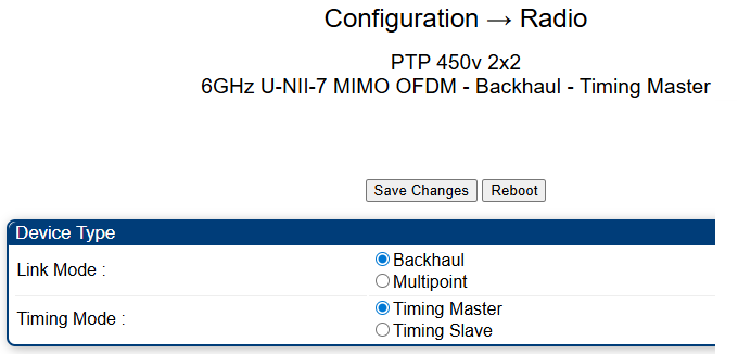 - I gather from the above that you want to configure this radio as a BHM (Backhaul Main/Master). Is that correct? (AP is not the correct terminology for this… the 2x2 450v cannot ever be configured as an Access Point).