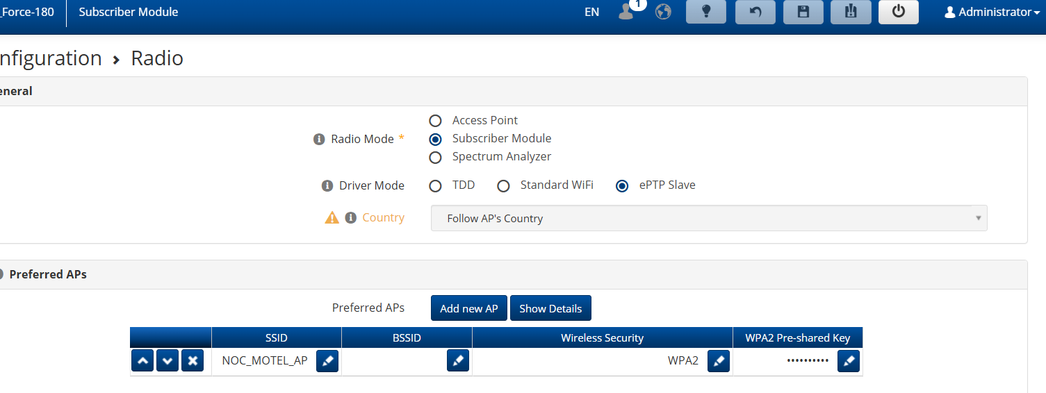 I noticed that too⌠but the screen shots he posted show that heâs using TDD-PTP mode, which should always allow for 1 SM to connect. I guess as a last ditch effort he could try TDD PtMP mode and see if increasing the max registrations allow it to connect.