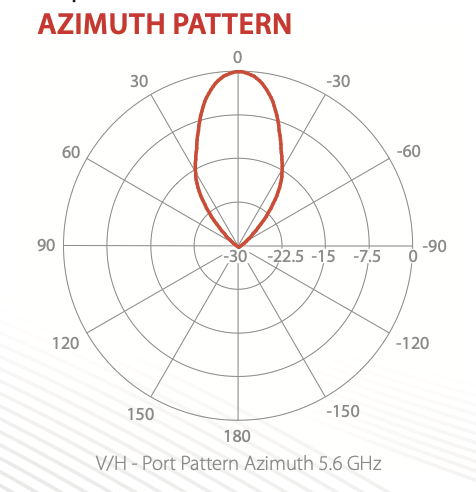 Yes, the Cyber Antennas are asymmetrical horns. We didn’t measure the elevation beamwidths at 5.3 GHz, but at 5.6 GHz the elevation half-power beamwidths are shown in green and are 11° and 14°.