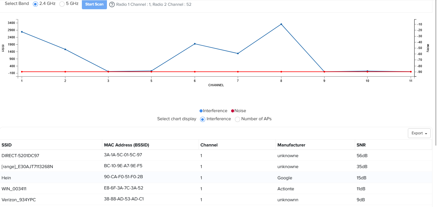 So many better options but nope the RV22 joins the Channel 1 party with all the other SSIDs that are not related to this client.