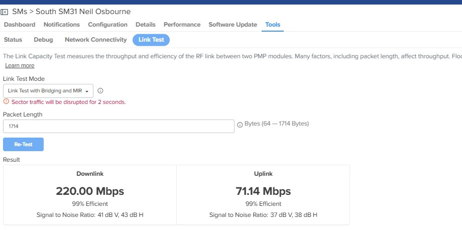 Keep in mind that the deep vc queue optimization typically does not increase the PMP450m’s aggregate link test capacity. It only improves headline throughput on PMP450b/i/v SM’s when using 5ms frames/30/40MHz channel widths. You should focus your testing to individual SM’s.