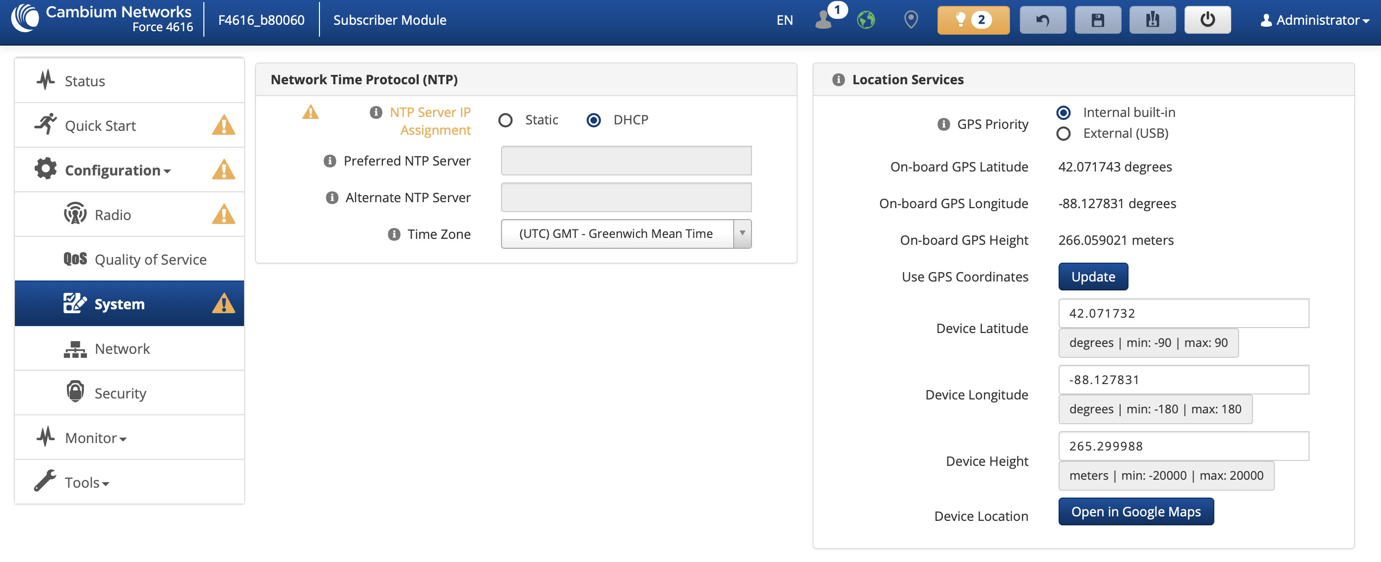 GPS options has to be configured on Configuration → System page in Location Services section.