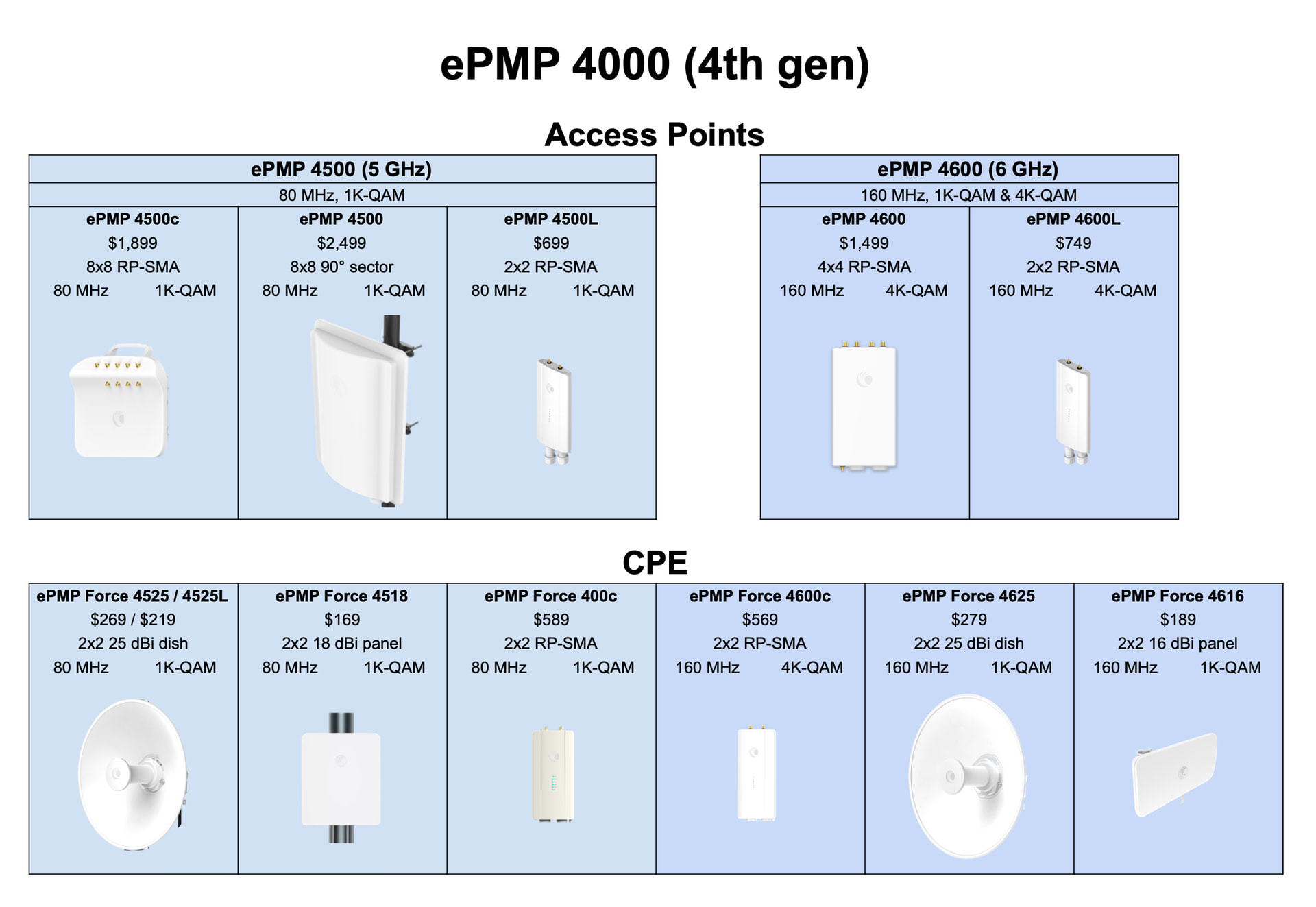 Edit: I had the wrong products and prices for the ePMP 4500 CPE.