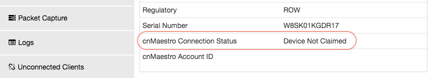 From the device dash board status, we shall be able to see cnMaestro connection status