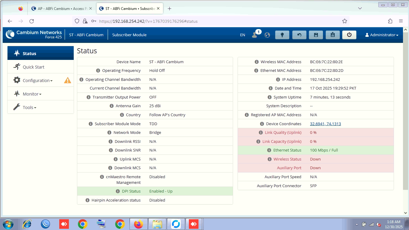 i am new to Cambium, earlier working with Ubnt, Unifi, Mimosa, LigoWave devices and satisfied with them; this is my first experience on Cambium recommended by a friend.
