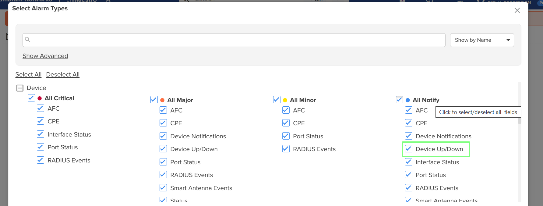 It appears that was unchecked for us. So, did the past cnMaestro upgrade uncheck this option? We used to get all device down and up notifications without any issues. Thanks…