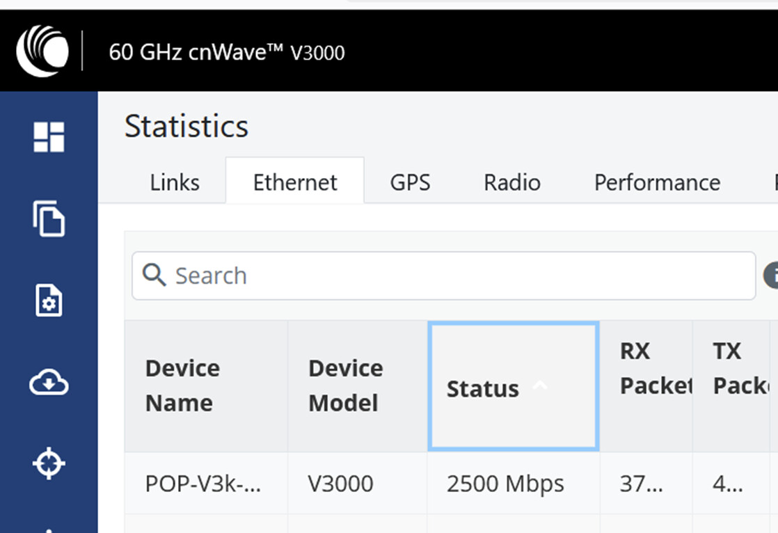 The main ports on the V3000 and V5000 are capable of supporting a 2.5G uplink speed. The exhibit below, taken from a lab setup, shows the negotiated link speed as 2500 Mbps in the Status column.