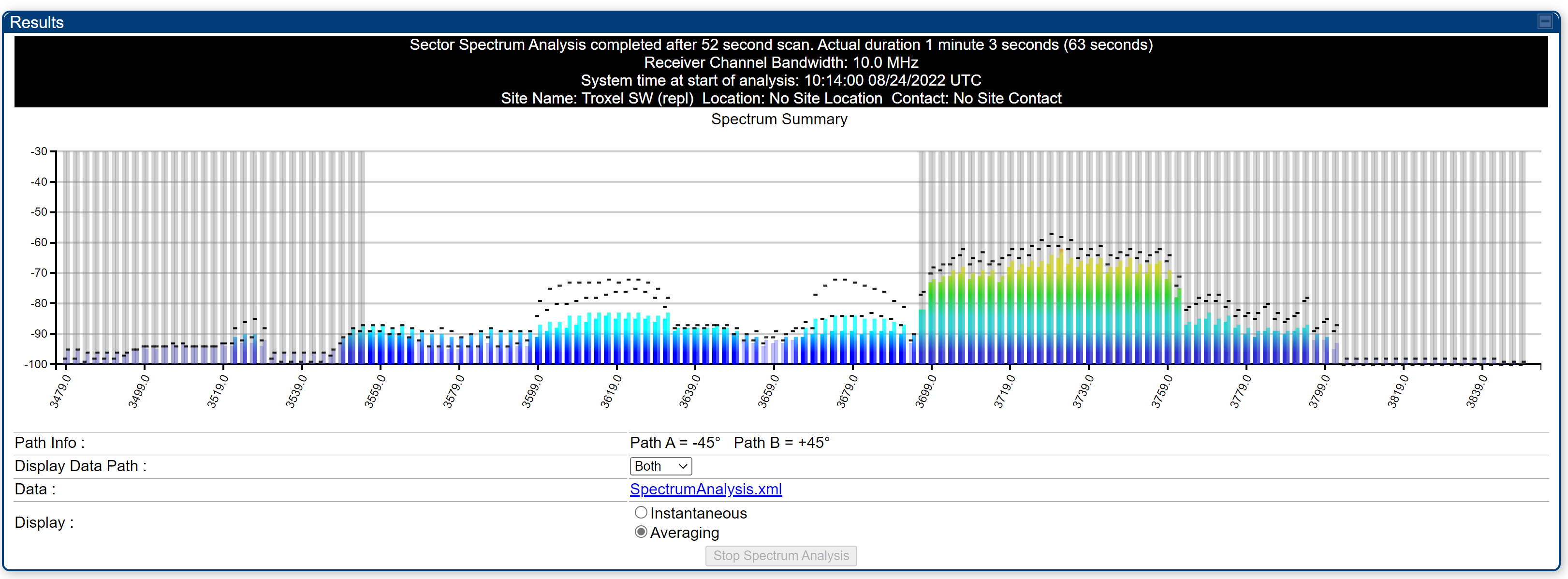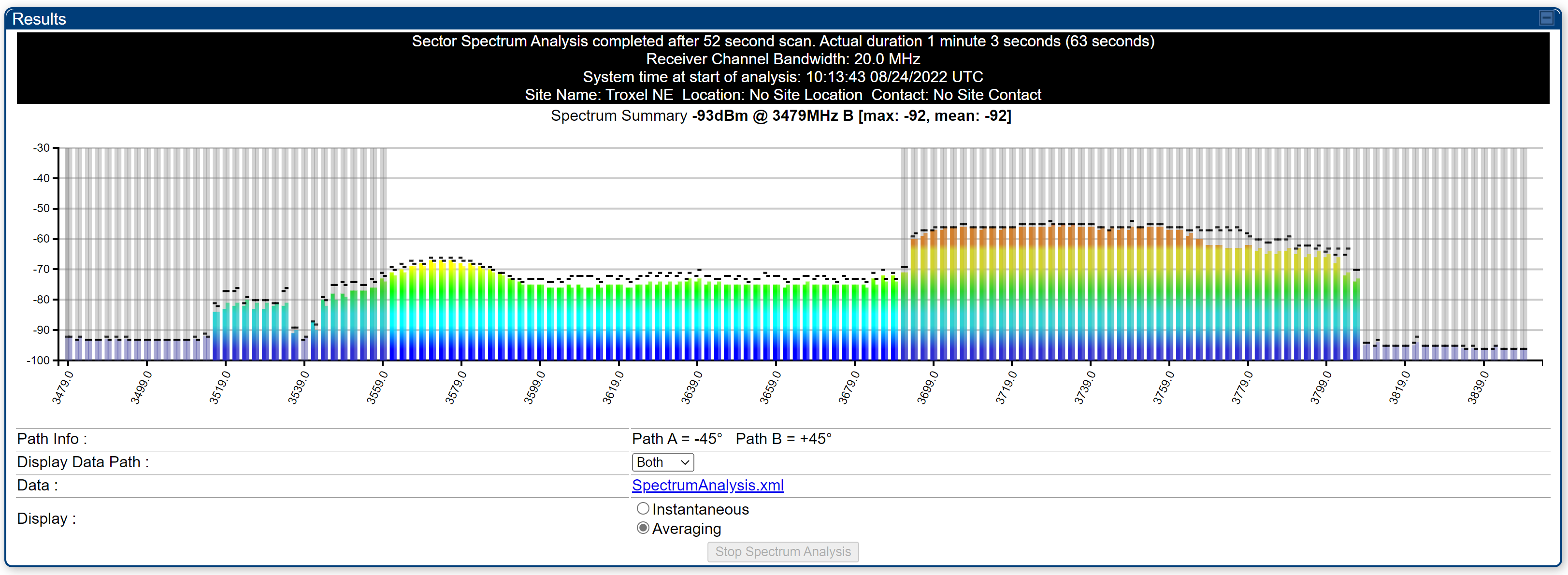 So at 5am this morning I ran SA on all 4 sectors simultaneously. I didn’t want to change the AP channel width to 5 MHz and mess up all the SAS grants so I let it run at 20 MHz.